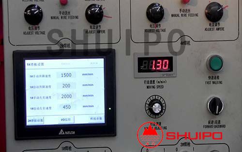 本機采用先進的PLC可編程控制技術、微電子技術,焊接速度達到2m/min,能在同一工件上一次焊接兩條水平相對的焊縫,工作效率是傳統設備的兩倍以上;采用了可靠靈活的柔性自動仿形技術,實現自動跟蹤,避免了對變截面部分補焊的缺點;雙弧雙絲送絲機構,確保了批量生產過程中穩定的焊接成型,避免了薄板焊接時穿透現象。